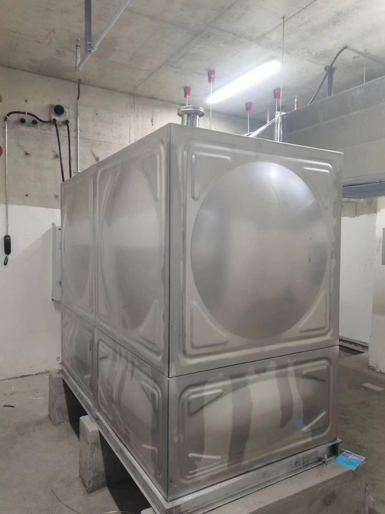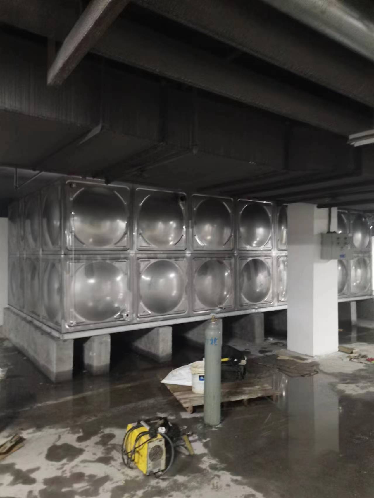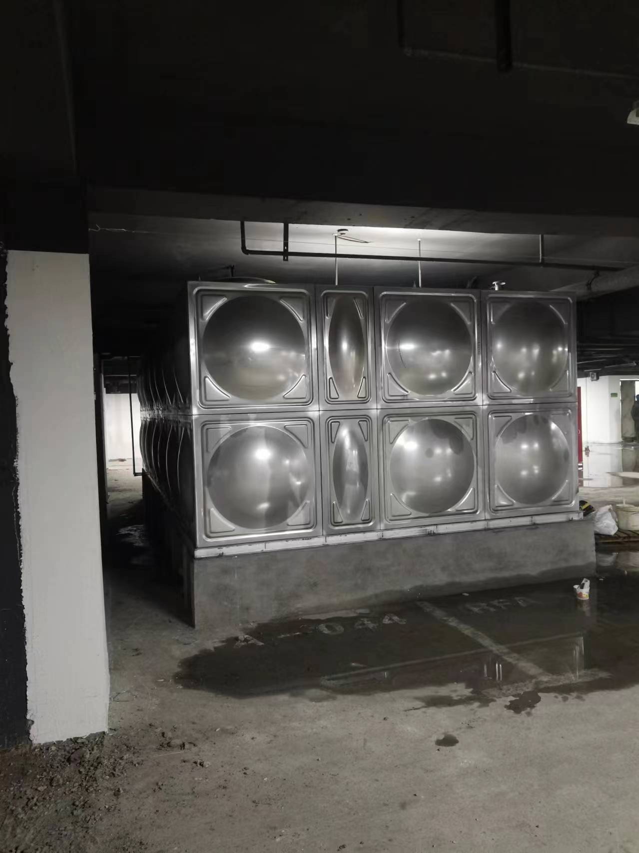 我司承接的河南省商丘市睢陽(yáng)區(qū)吾悅廣場(chǎng)人防水箱項(xiàng)目已完工,此水箱采用的是SUS-304不銹鋼材質(zhì)。不銹鋼水箱是由單元矩型模壓板制作而成的,通過(guò)材料變型的方法達(dá)到強(qiáng)度的效果,還可以任意拼裝,利用少的耗材做成完成品,這樣節(jié)能又環(huán)保。