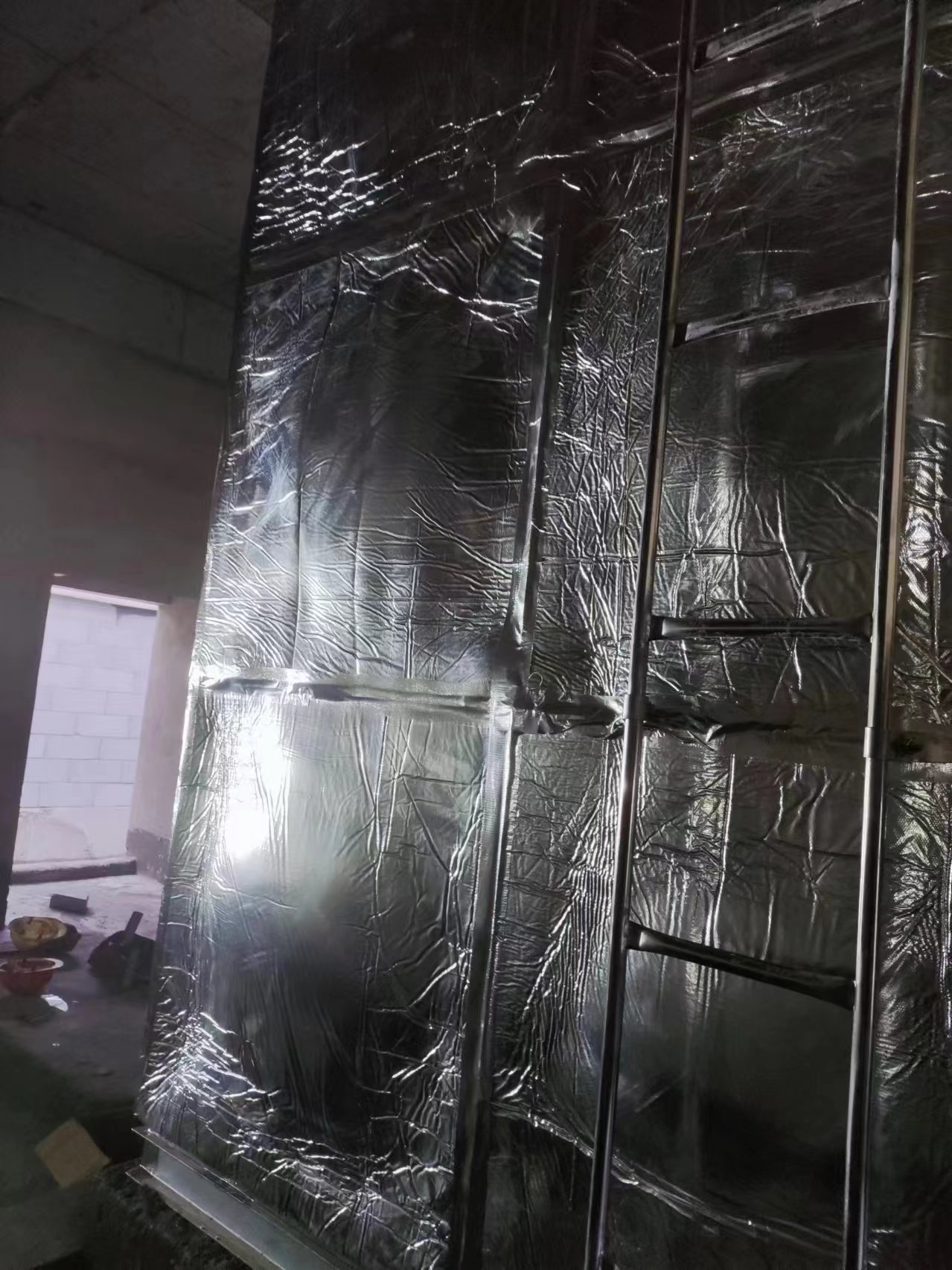 我司承接的山西省大同市中建三局職業(yè)技術(shù)學(xué)院辦公樓屋頂高位消防水箱項(xiàng)目,已經(jīng)安裝試水完成。此水箱為高位鍍鋅鋼板消防水箱,外表做了橡塑鋁箔布保溫層,鋁箔橡塑保溫材料為閉泡式結(jié)構(gòu),且表面平整光滑,所以外界空氣中的水汽很難滲透到材料之中,保冷保溫不必再添加隔汽層,從而獲得較佳的導(dǎo)熱系數(shù),它的陰濕因子大于4.5×103,使它的整體既是保溫層又是防潮層。因此適用于多種防火要求較高的場(chǎng)所使用。